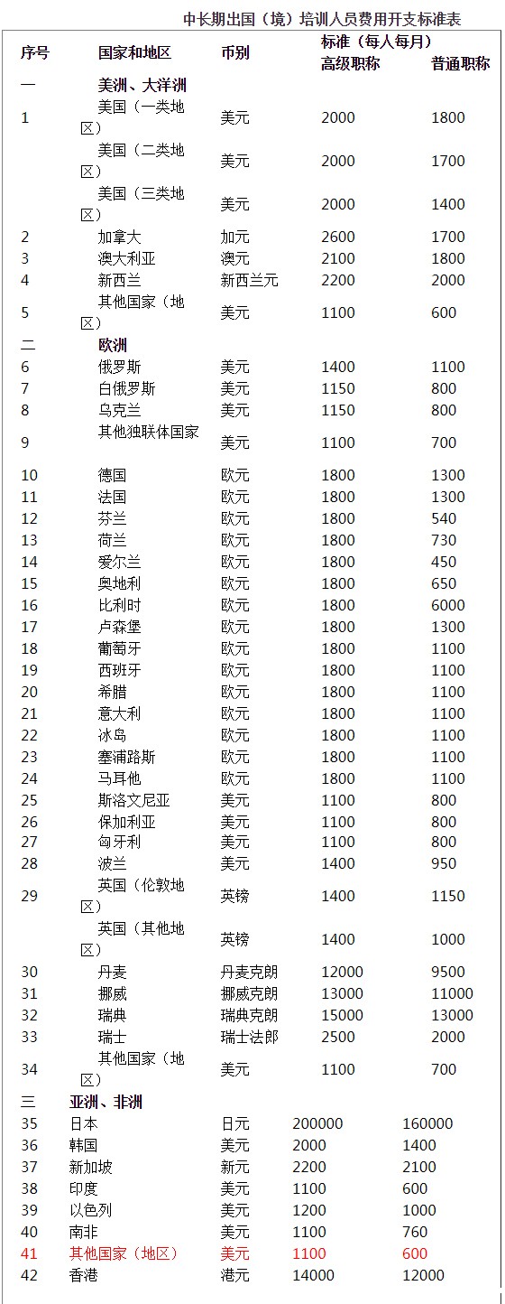 根据突出重点、优化结构、提高质量的要求,为进一步加强高层次人才出国(境)培训力度,保证中长期出国(境)培训工作健康稳定发展,考虑到近年来国外物价水平的上涨、医疗保险费用的增加以及其他一些相关费用的提高,经研究,决定对中长期出国(境)培训人员的费用开支标准进行调整。现将有关事项通知如下: