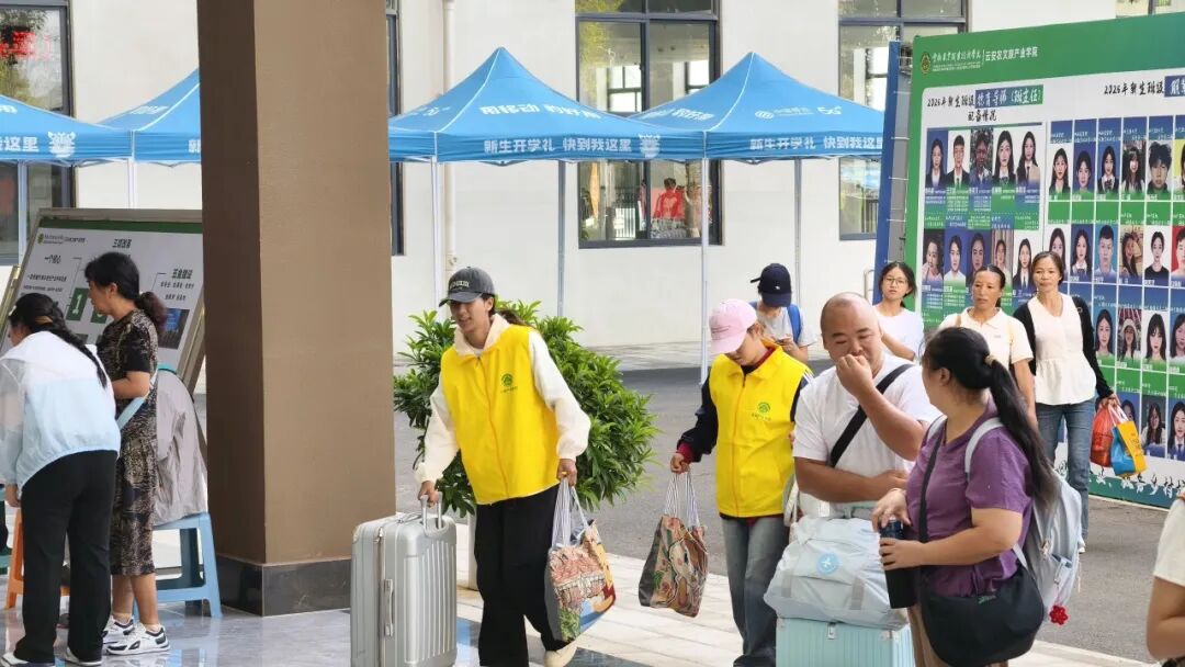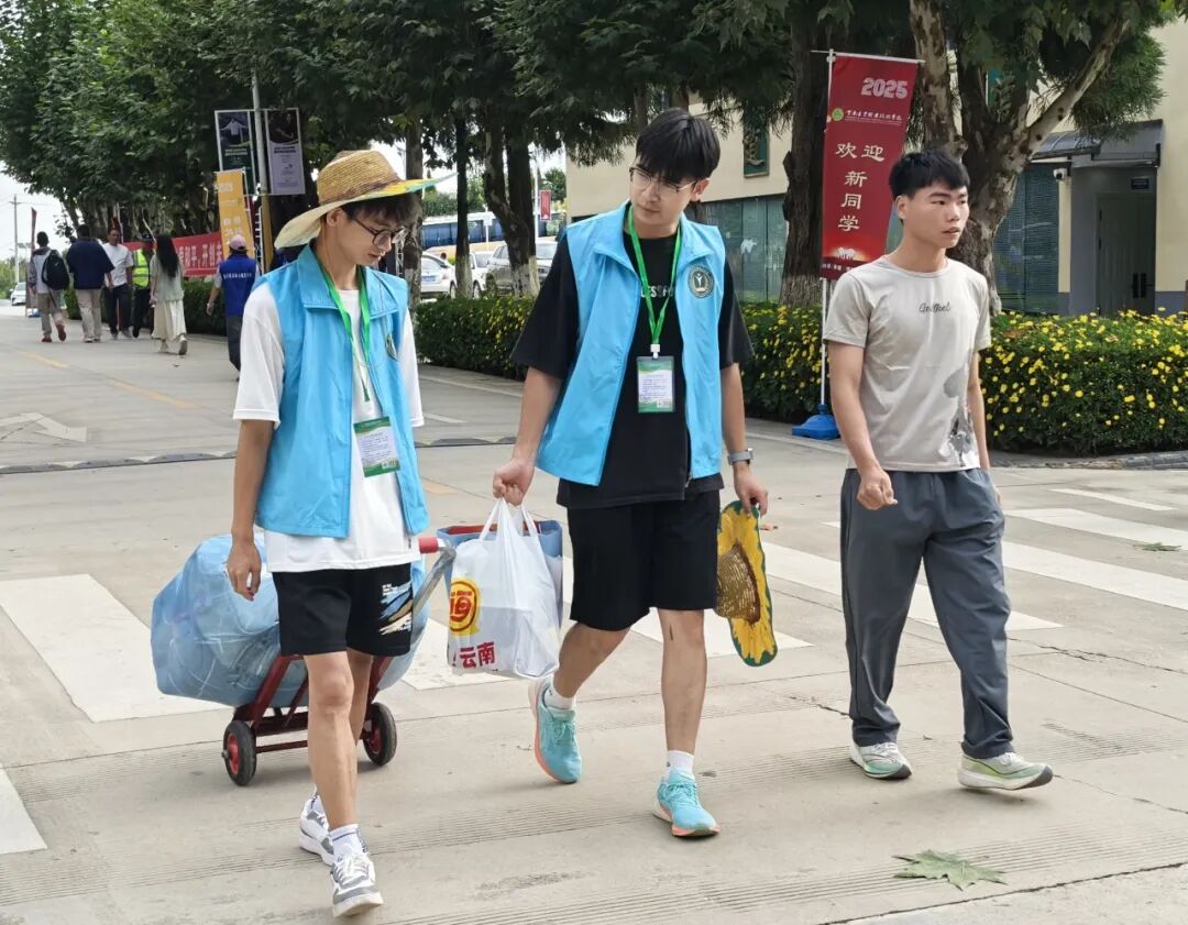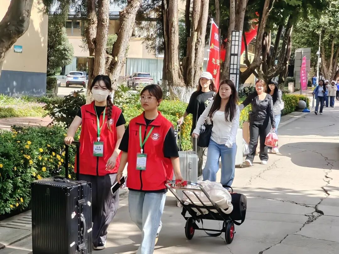 报到现场,志愿者们是校园里最亮眼的“风景线”。他们主动上前接过新生手中的行李,耐心指引报到路线,用热情的服务缓解新生初入校园的陌生感。在各二级学院报到点,老师们与志愿者密切配合,细致为新生办理入学登记、资料审核等手续,解答新生及家长关于专业学习、住宿生活等方面的疑问,高效便捷的流程让迎新工作尽显温度。