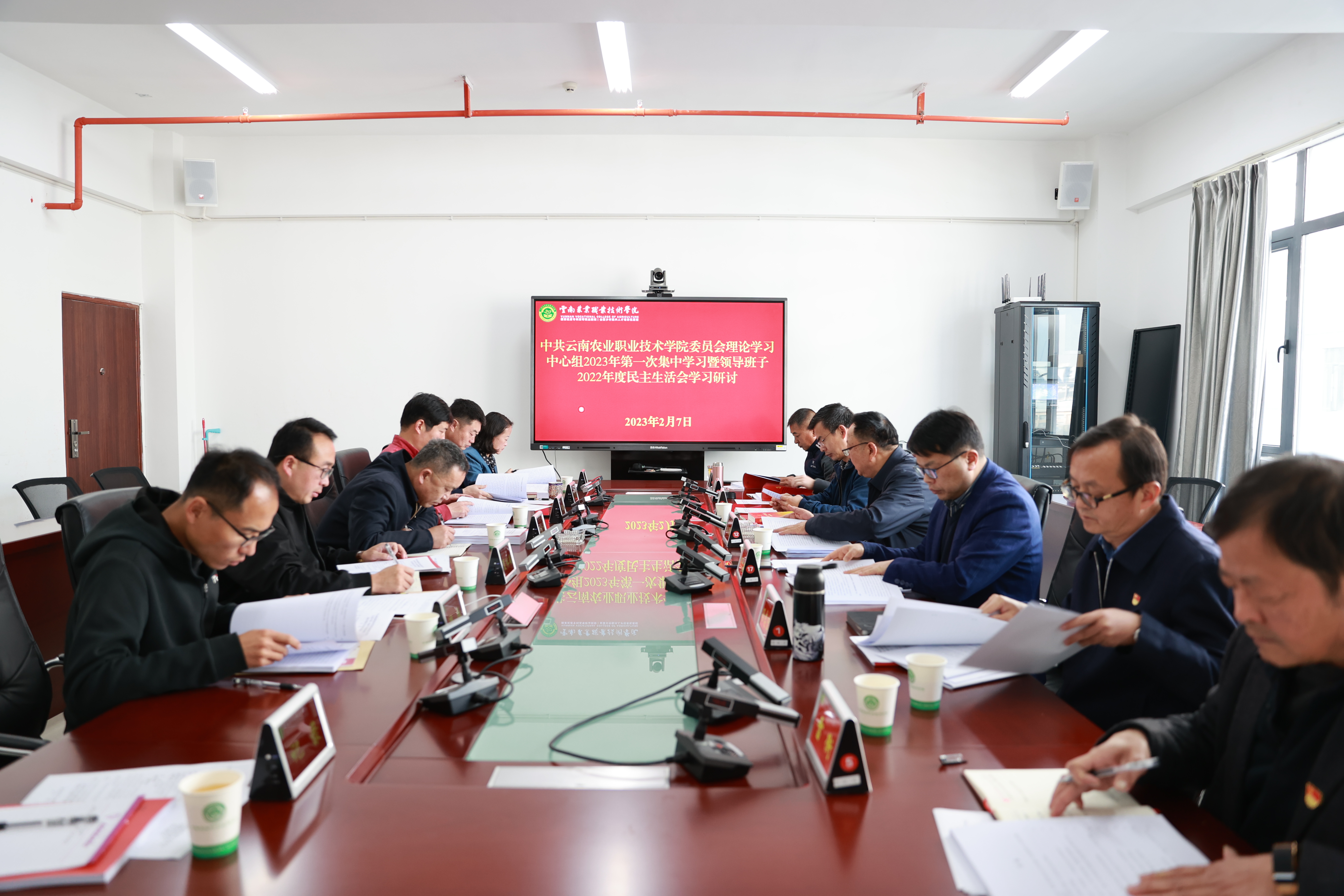会上,党委书记文俊、院长陈太安、党委副书记伍学龙、纪委书记冯志宏分别领学,全面准确深入学习领会党的二十大精神,认真领悟党的二十大提出的新思想新论断、作出的新部署新要求。全体与会人员认真学习党的二十大报告和党章,传达学习习近平总书记在党的二十届一中全会、中央政治局民主生活会、二十届中央纪委二次全会、中央农村工作会议上的重要讲话精神;认真学习《党委(党组)落实全面从严治党主体责任规定》《县以上党和国家机关党员领导干部民主生活会若干规定》等党内法规和制度,传达学习云南省纪委十一届三次全会精神。