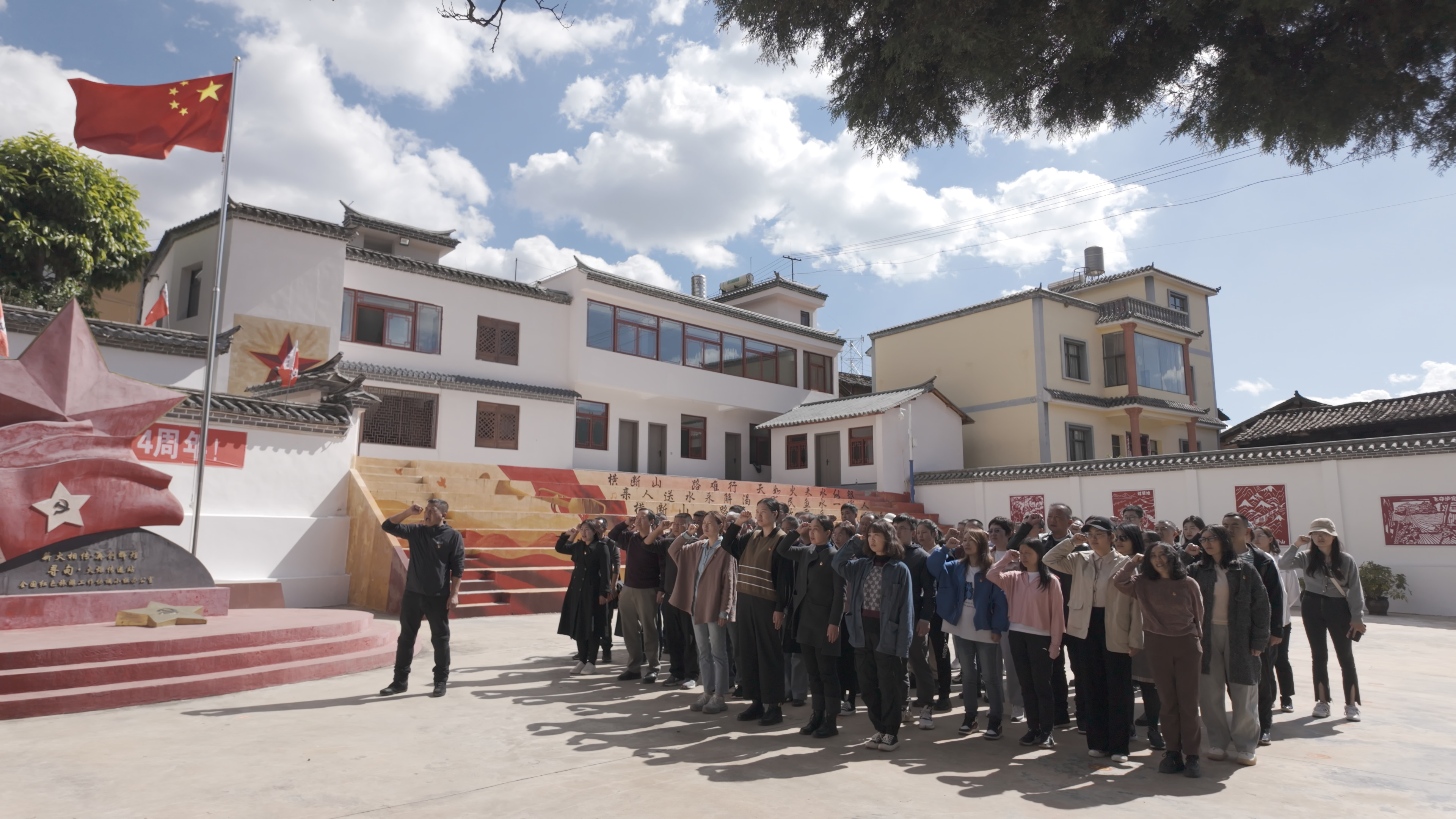在红军长征柯渡纪念馆广场上,组织开展了新党员宣誓、老党员重温入党誓词活动,由苏华伟同志领誓,全体党员举起右手,庄严宣誓。随后,在纪念馆讲解员的带领下,党员同志们怀着对革命先烈的无比崇敬之情,先后参观了中央红军总部驻地旧址、中央红军领导人驻地旧址和主题陈列展厅。在2个驻地旧址,党员同志们身临其境般再一次感受了1935年中央红军和1936年红二、六军团长征过云南的革命史实;在主题陈列厅,通过运用现代化的展览手段,党员同志们更深入地了解到了整个长征过程及过云南、过寻甸、巧渡金沙江的丰功伟绩。