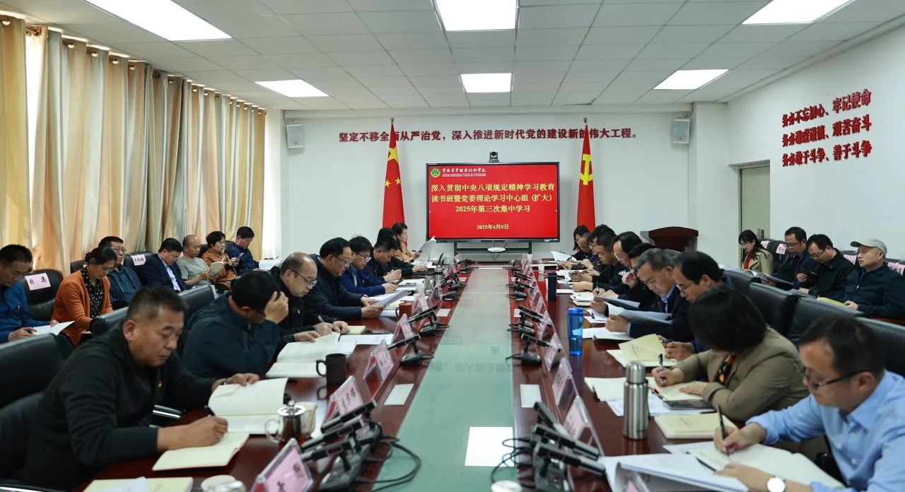 中心组学习4月9日,学校党委在小哨校区综合楼四楼会议室举办深入贯彻中央八项规定精神学习教育读书班暨党委理论学习中心组(扩大)2025年第三次集中学习,认真学习习近平总书记关于加强党的作风建设的重要论述和中央八项规定及其实施细则精神,贯彻落实上级工作要求,示范带动全校学习教育走深走实。学校党委书记文俊主持会议并作讲话,全体校领导、副处级及以上干部参加学习。