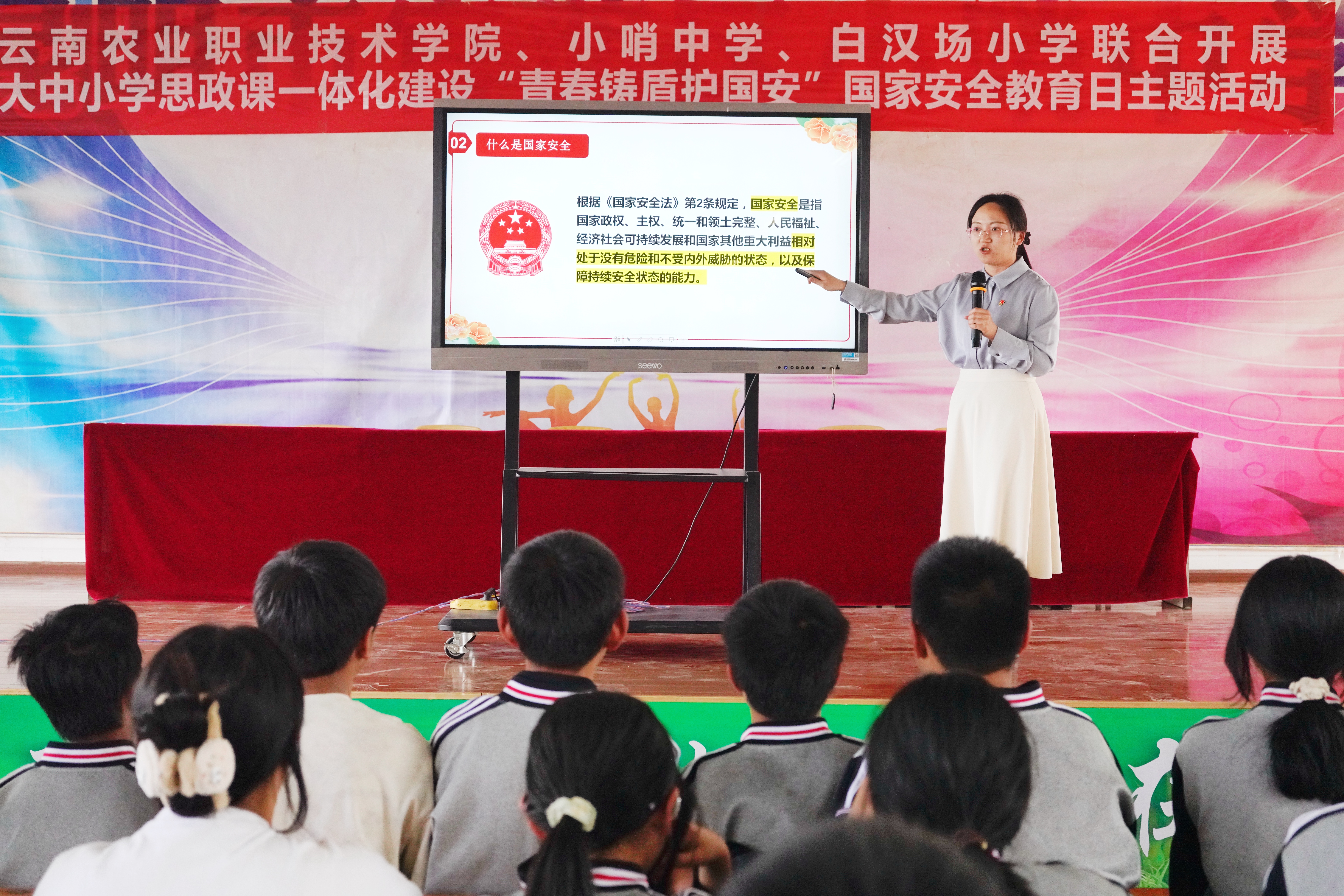 今年是第十个全民国家安全教育日。为深入贯彻落实总体国家安全观,增强全民国家安全意识,持续推进大中小学思政课一体化建设走深走实。2025年4月16日下午,马克思主义学院与结对共建的小哨中学、白汉场小学开展了一场生动的师生“同上一堂思政课”活动。
