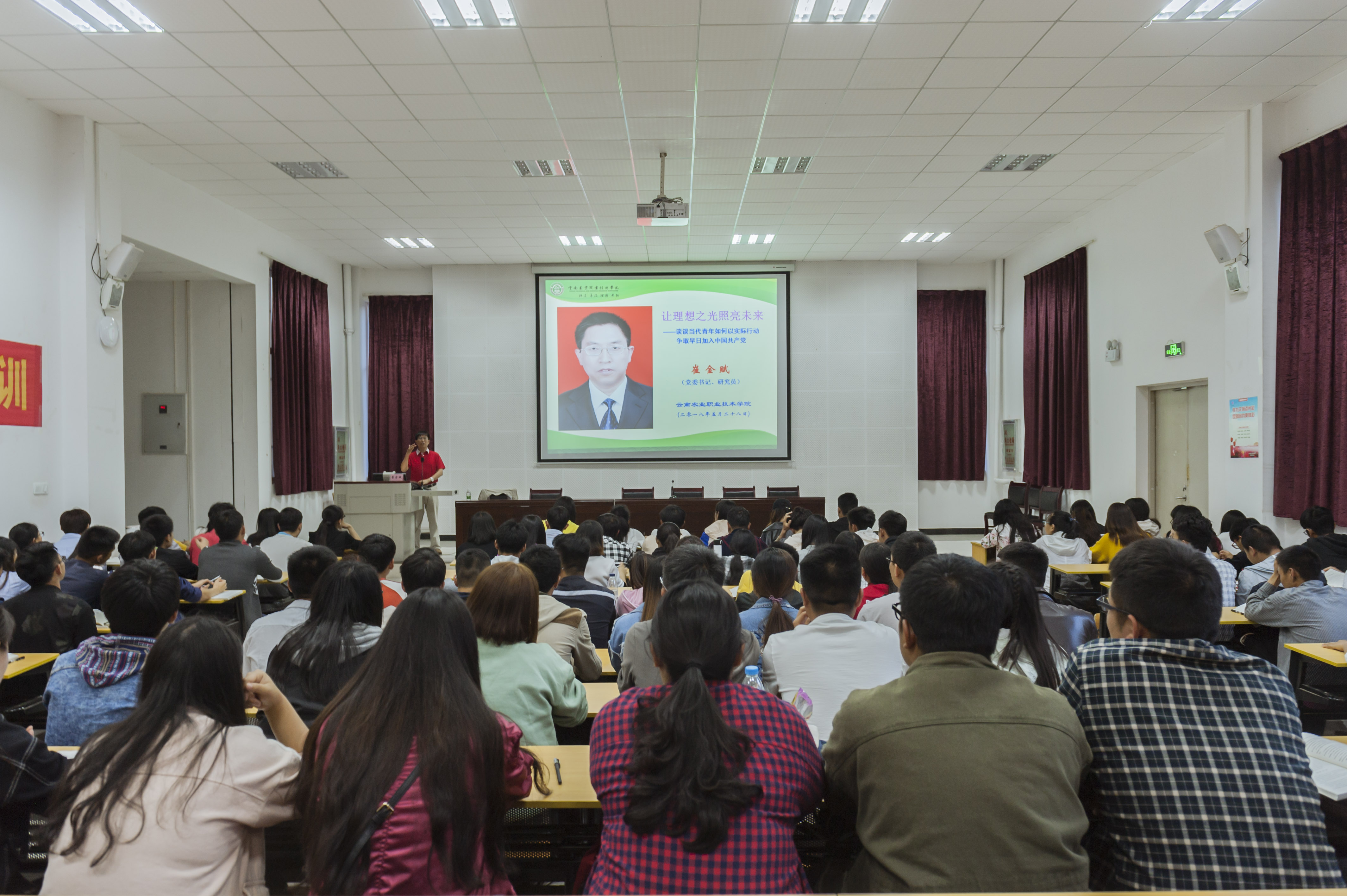 党建动态2018年5月28日晚19:40,在学院综合楼阶梯教室,学院党委书记、党校校长崔金赋同志为来自5个二级学院党总支部选送的全体入党发展对象讲授了一堂意义深刻的党课。