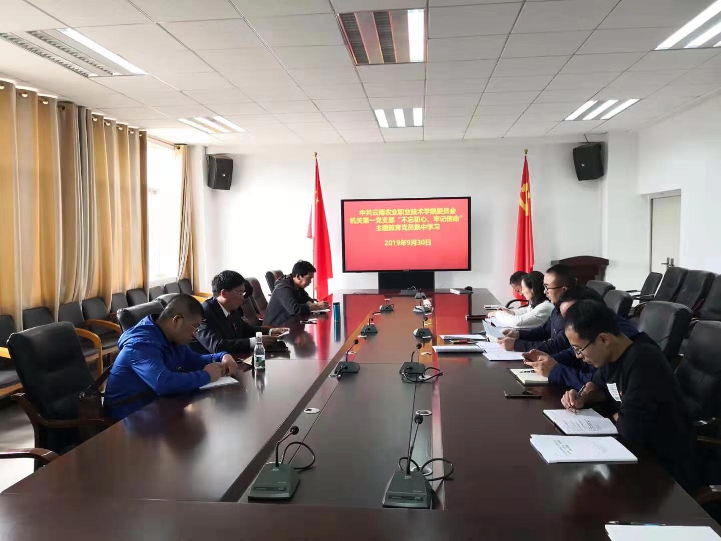 2019年9月30日中午,机关党总支第一支部召开会议,开展“不忘初心、牢记使命”必威手机网页集中学习,会议由支部书记夏体韬同志主持,党委书记崔金赋同志以普通党员身份参加了会议。