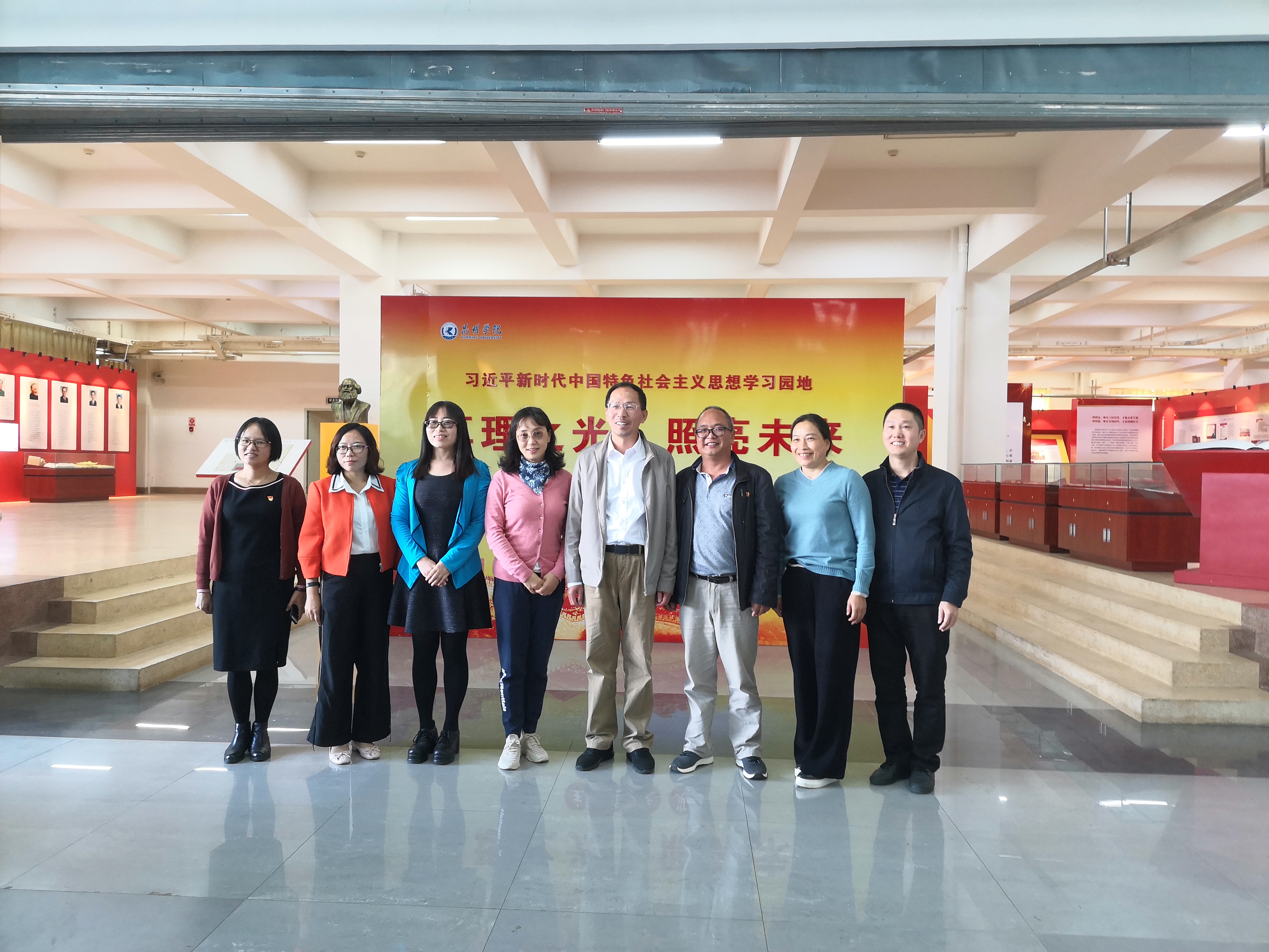 此次“手拉手”(第九组)共建活动由昆明学院马克思主义学院主办,参加本次活动的高校有云南农业大学、云南师范大学文理学院、昆明学院、必威手机平台官网首页、云南外事外语职业学院、云南特殊教育职业学院、西双版纳职业技术学院和普洱学院等八所学校。本次活动分为共同交流会、参观昆明学院思政课实践教学基地——“习近平新时代中国特色社会主义思想学习园地”和“滇池流域生态文化博物馆”两部分。