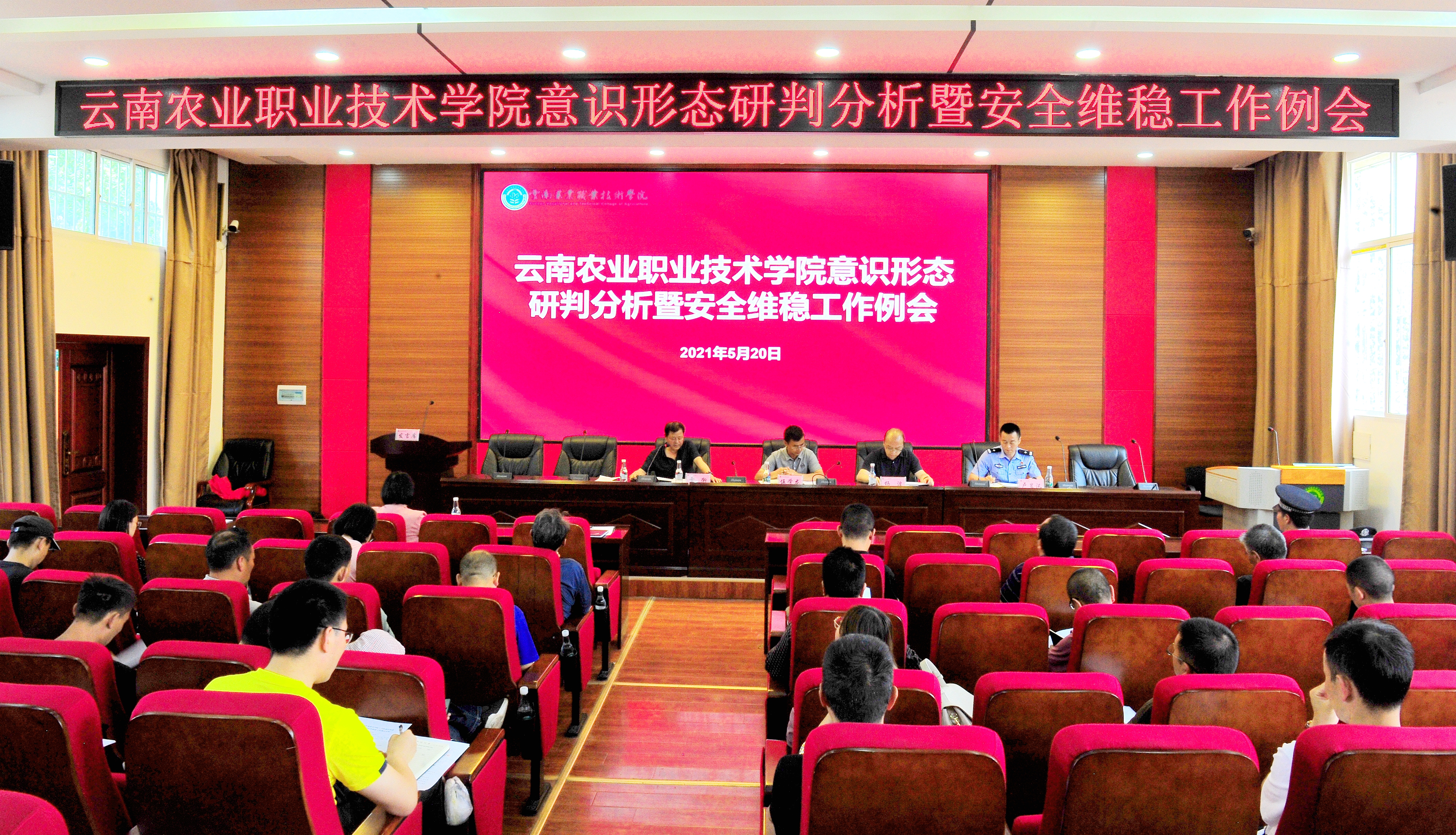 意识形态5月20日下午,学院在小哨校区嘉锐楼一楼阶梯教室召开了5月份意识形态研判分析暨安全维稳工作例会。学院党委副书记伍学龙,副院长杨波、雷衡出席会议。会议由副院长雷衡主持。