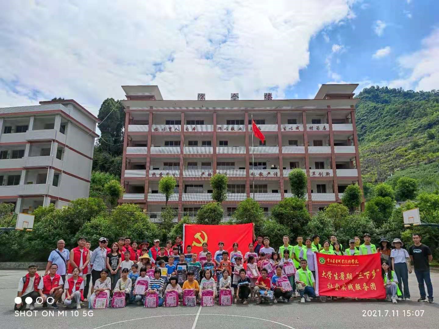11日下午,师生们一起达到双河乡菜营小学,在这里马克思主义学院教师为当地小朋友上了一堂简单有趣的儿童自我保护课;课后同学们与当地小朋友进行了丰富多样的游戏,最后师生们还为前来参加活动的小朋友送上了各种文具。