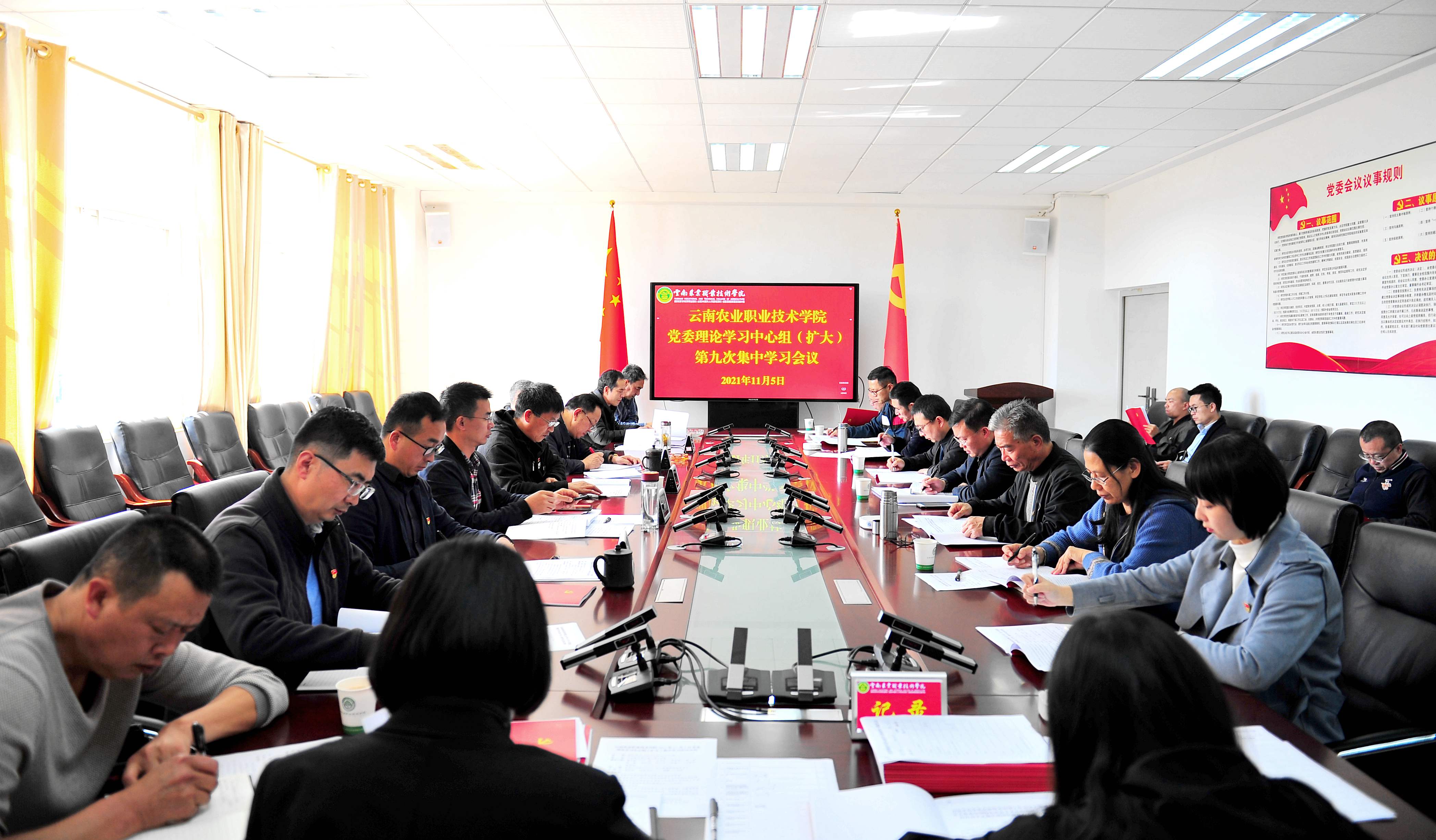 中心组学习11月5日下午,学院在综合楼421会议室举行党委理论学习中心组(扩大)2021年度第九次集中学习。党委理论学习中心组成员、各部门负责人、各二级学院党总支书记参加学习,会议由党委书记崔金赋同志主持。