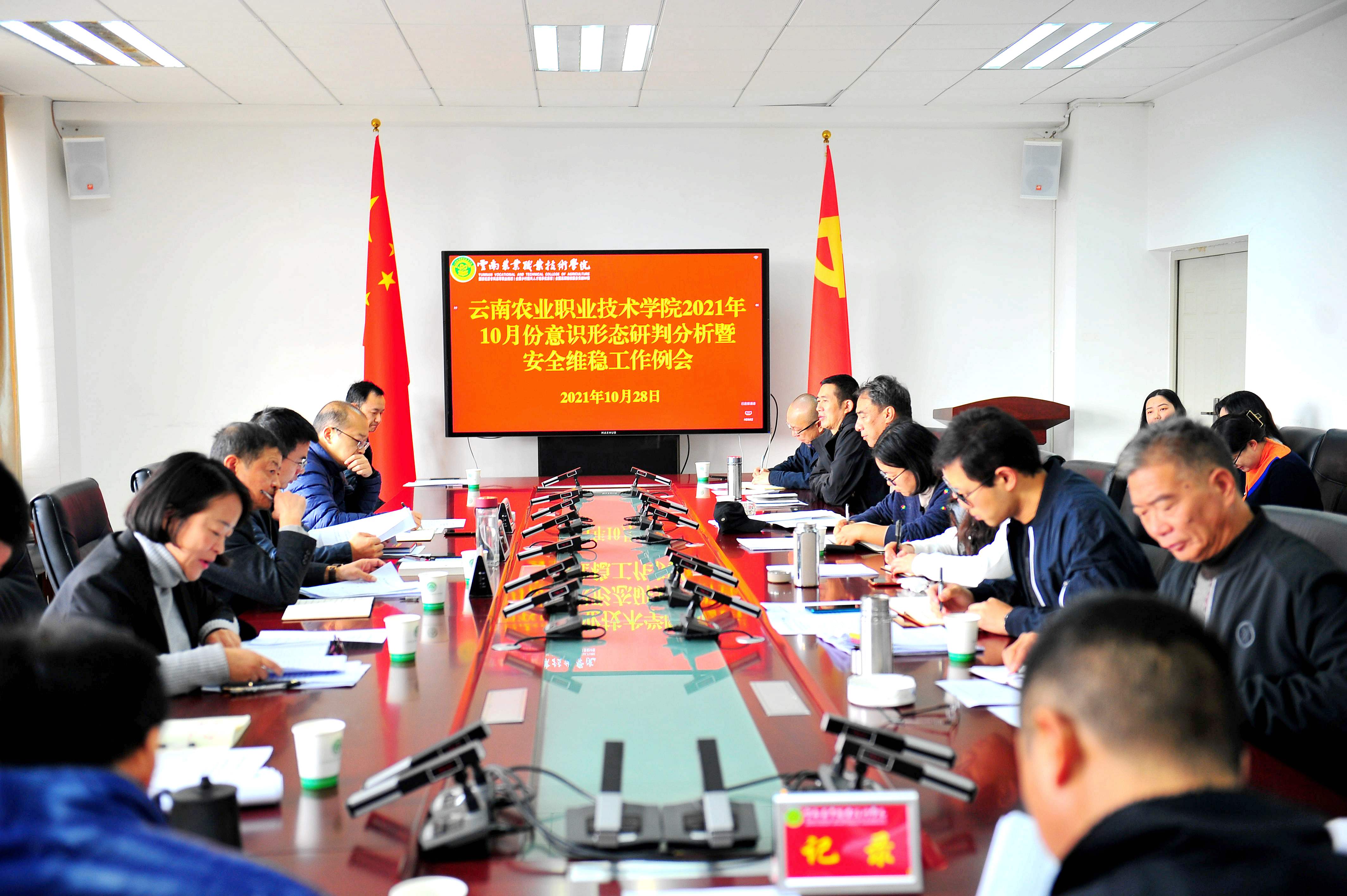 会议由伍学龙副书记就近期意识形态和安全维稳工作提出要求。他强调,随着学生群体层次变化及社会环境的影响,意识形态安全风险和安全维稳工作难度加大,对下一步开展工作提出了新挑战和更高要求。主要抓好以下七个方面的工作:一是加强对《云南农业职业学院突发事件应急预案(试行)》的学习,让各类突发事件应急处置有章可循,报告、前期处置等程序更加规范;二是注重顶层设计,加强辅导员队伍建设、发挥辅导员优势,把工作做实做细,发现在前端落实在末端。三是重视制度建设。通过多渠道多方法多形式,进一步制定行之有效全面多元的规范制度;成熟一个、讨论一个、推出一个、落实一个。四是注重系统联动的紧密性,形成合力,各部门和二级学院要把管理重心下沉到宿舍,提高处置突发事件的预见性、有效性和全面性;五是功夫下在平时,用心关爱学生。要积极动员学生购买人身意外伤害险,特别是在外实习学生,增强安全保障屏障,防患于未然。六是及时收集掌握师生的思想动态和趋向,充分汲取反面案例的教训,及时发现、分析、解决问题。七是树立有效预防为先观念,狠抓具体工作落实为本,提高效率,真正达到安全维稳例会的目的。