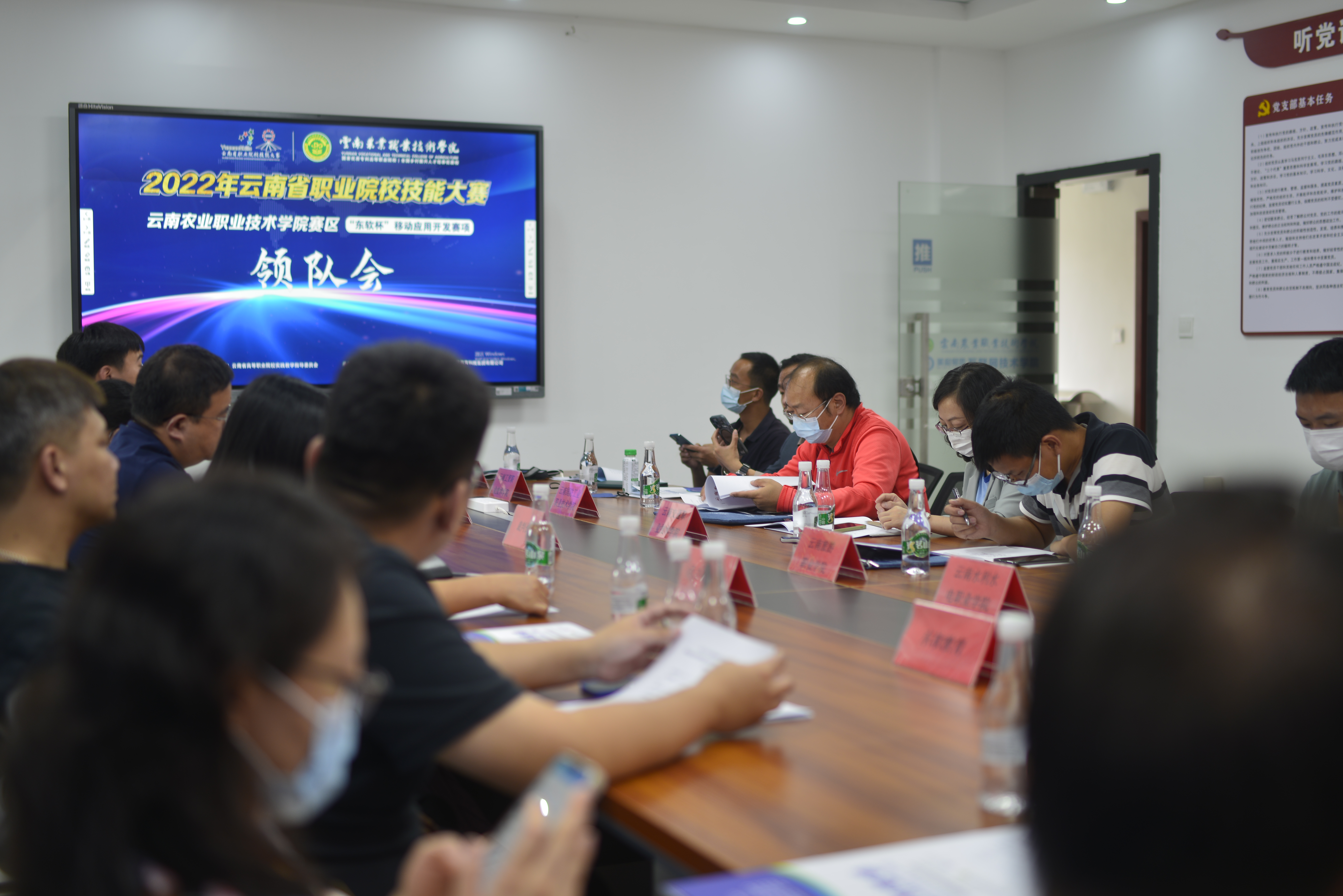 教育教学9月21日下午,2022 年云南省职业院校技能大赛高职组移动应用开发赛项在我院茭菱校区202会议室顺利召开。互联网技术学院党总支副书记胡琼、常务主任李运来、学工主任沙鸥、学术主任李江文;湖南科技职业学院教授宋剑杰;东软教育科技集团有限公司高级工程师李东阳、杨俊;各参赛院校领队老师参和相关工作人员加此次会议,会议由互联网技术学院院长助理胡婷婷主持。