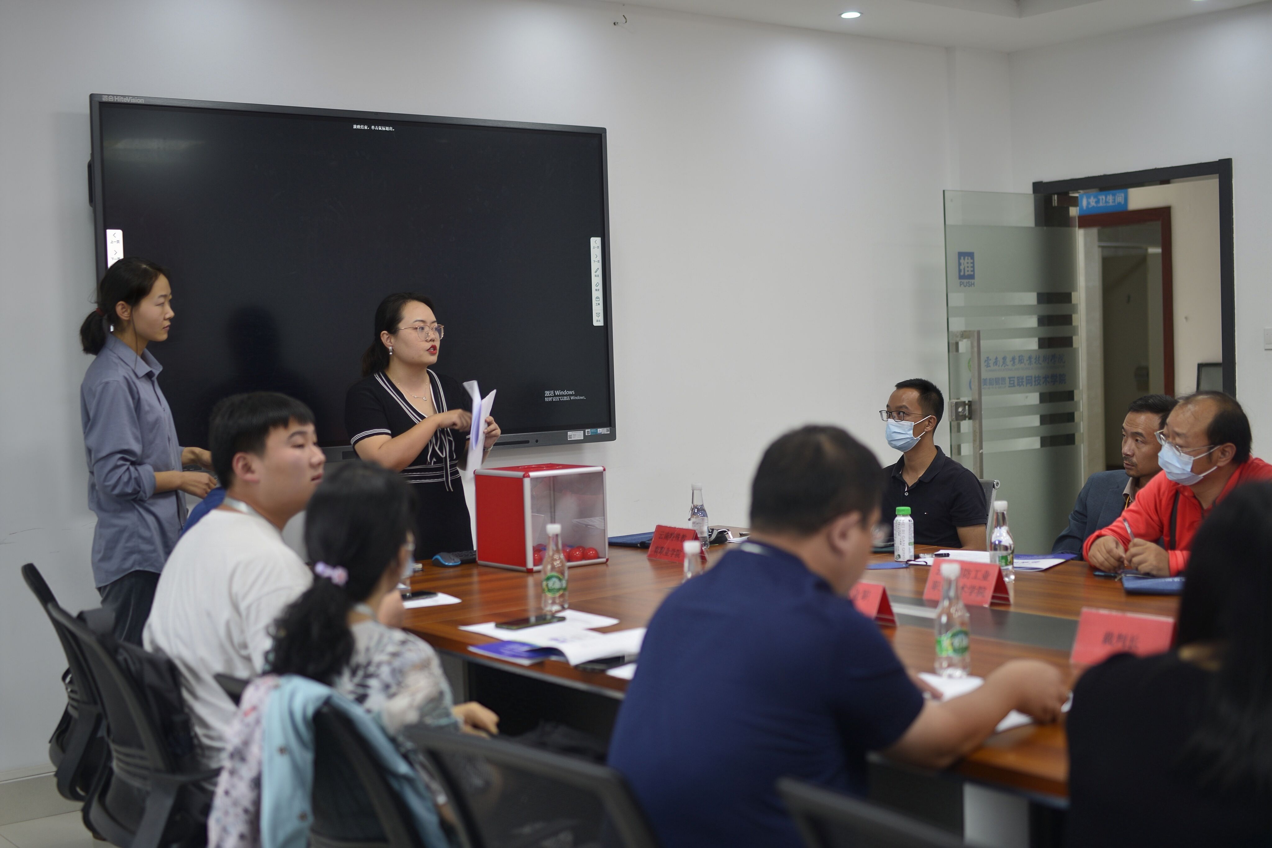 胡琼副书记代表我院对来自全省的领队、裁判及选手表示热烈的欢迎,简要介绍了学院的基本情况,并表示作为承办方,我们会做好服务和疫情防控工作,确保赛事平安顺利的基础上,高效完成各项赛程。李江文老师对比赛流程进行介绍,重点强调了比赛过程中的相关事宜,并就参赛队提出的有关问题给予了回复,互联网技术学院将竭力为所有参赛队提供充足的保障,确保所有选手能安心、顺利完成比赛。杨俊老师作为技术指导为大家讲述了比赛注意事项,并对各领队老师提出的疑惑进行了耐心解答。最后由各领队老师上台为各位选手抽取检录序号,现场公平、公开、公正,井然有序。