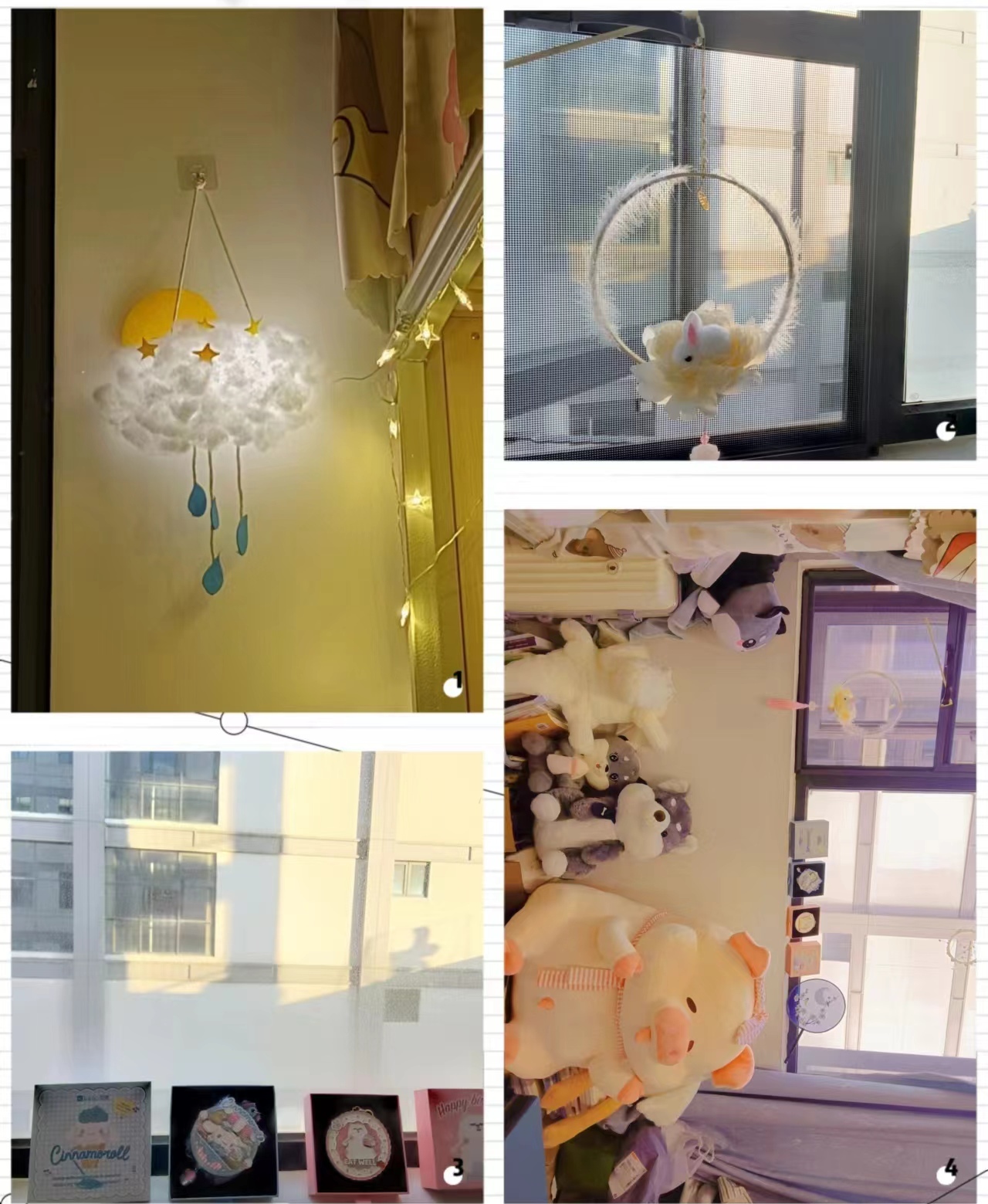 同学们精心装饰自己的“小窝”,寝室被装点得多姿多彩,琳琅满目,有的具有浓厚的学习氛围,有的充满文艺气息,有的展现了大学生的朝气与蓬勃……整洁的地面、整齐的被子、和谐的氛围,处处都是同学们精心设计的成果;不同的装饰、不同的风格,都是对美的诠释,大家齐心协力打造出独有的生活空间。