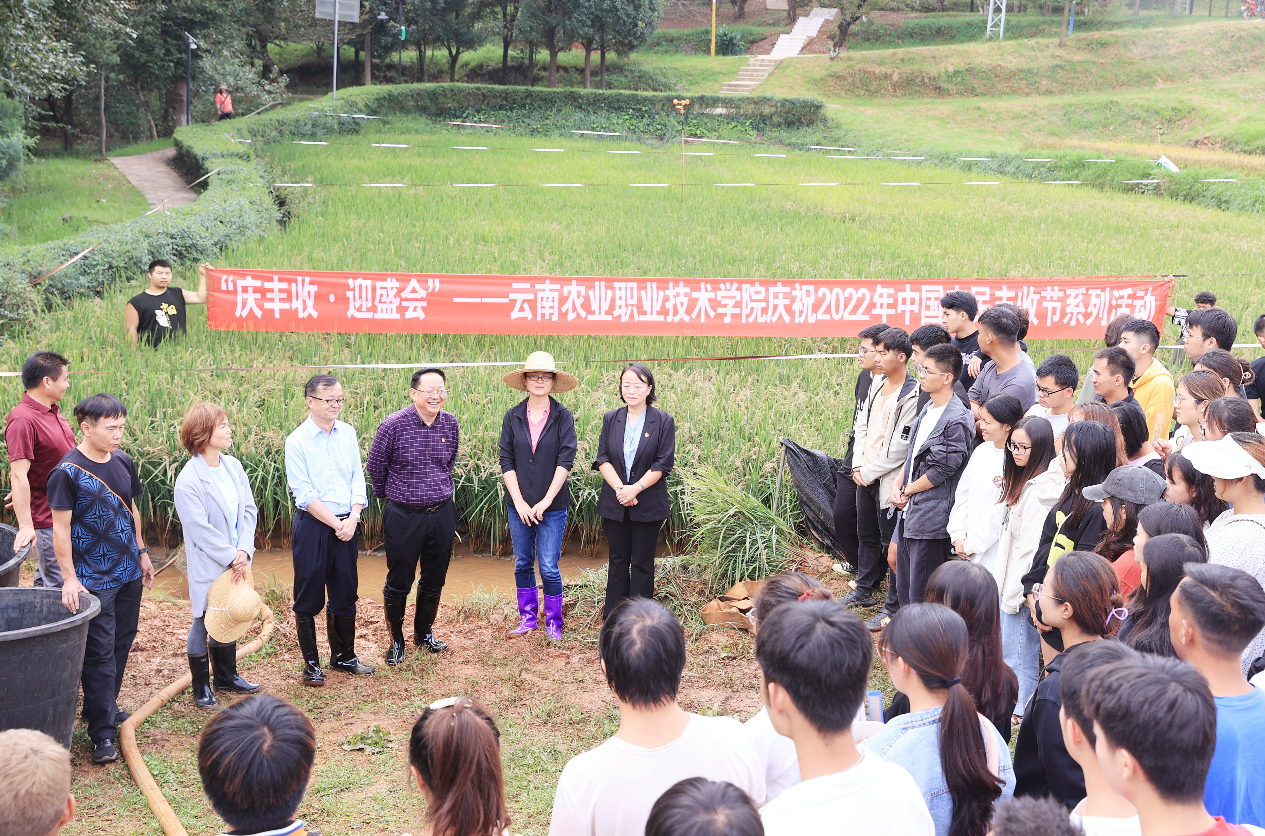 纪委书记冯志宏为活动致辞,他指出稻花鱼捕捞活动是学院认真贯彻落实习近平总书记关于劳动教育的一系列重要指示批示精神,开展耕读教育的重要举措,体现了校训中“耕道”的精神,传承了中华农耕文化,助力培育乡村振兴人才。