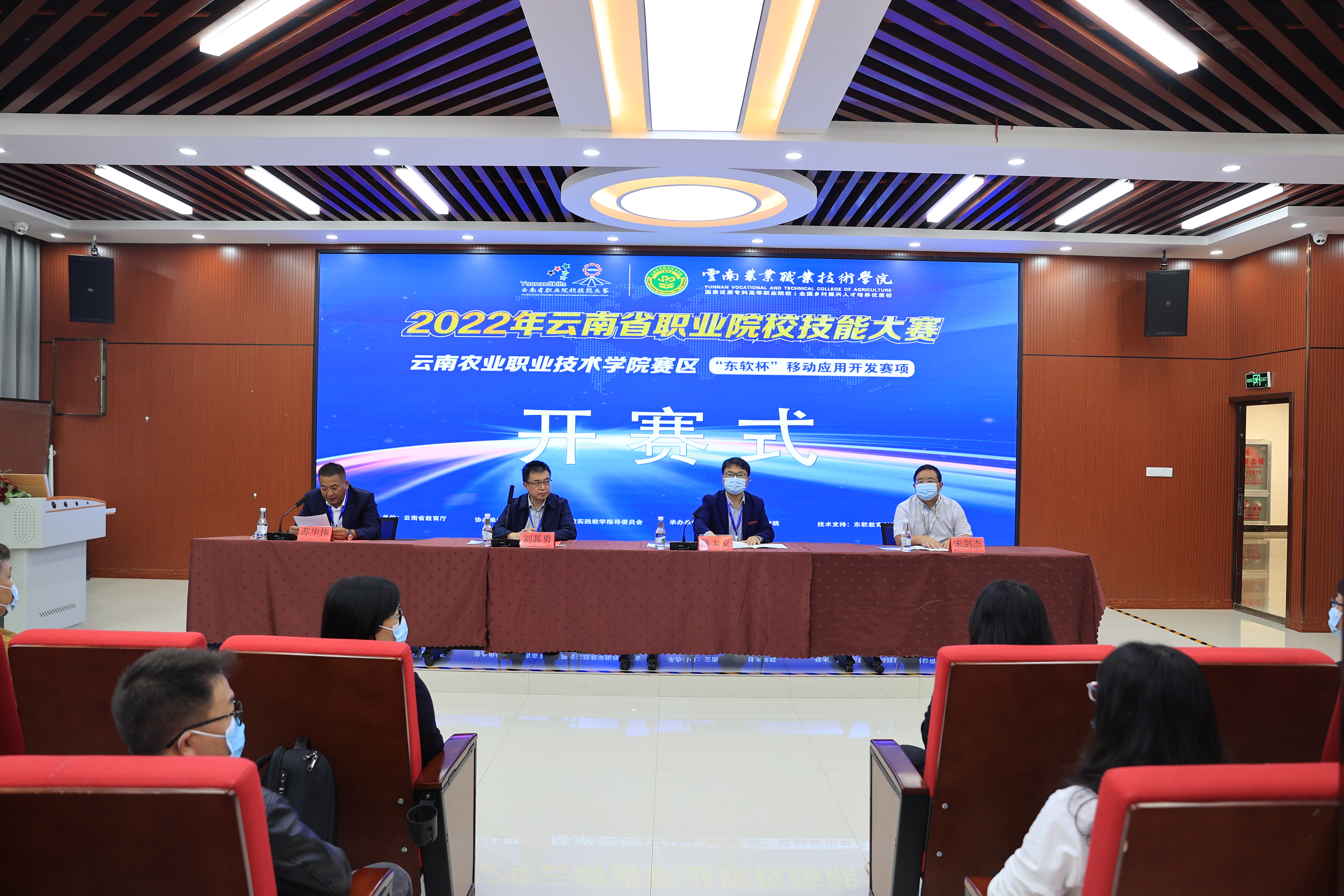 上午8:40分,大赛在A2-401报告厅隆重举行开赛式。云南省教育厅职成教处处长刘其勇、我院院长陈太安、湖南科技职业学院教授宋剑杰、昆明学院教授高联雄、东软教育科技集团有限公司高级工程师李东阳、东软教育科技集团有限公司高级工程师杨俊以及各参赛学校领队教师和参赛学生代表齐聚开赛式现场,共同见证大赛开幕。开赛式由必威手机平台官网首页副院长苏华伟主持。