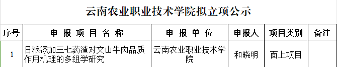 近日,云南省科技厅发布了《关于公示2024年度云南省农业基础研究联合专项拟立项项目的通知》,由畜牧兽医学院和晓明博士申报的《日粮添加三七药渣对文山牛肉品质作用机理的多组学研究》项目获批立项。