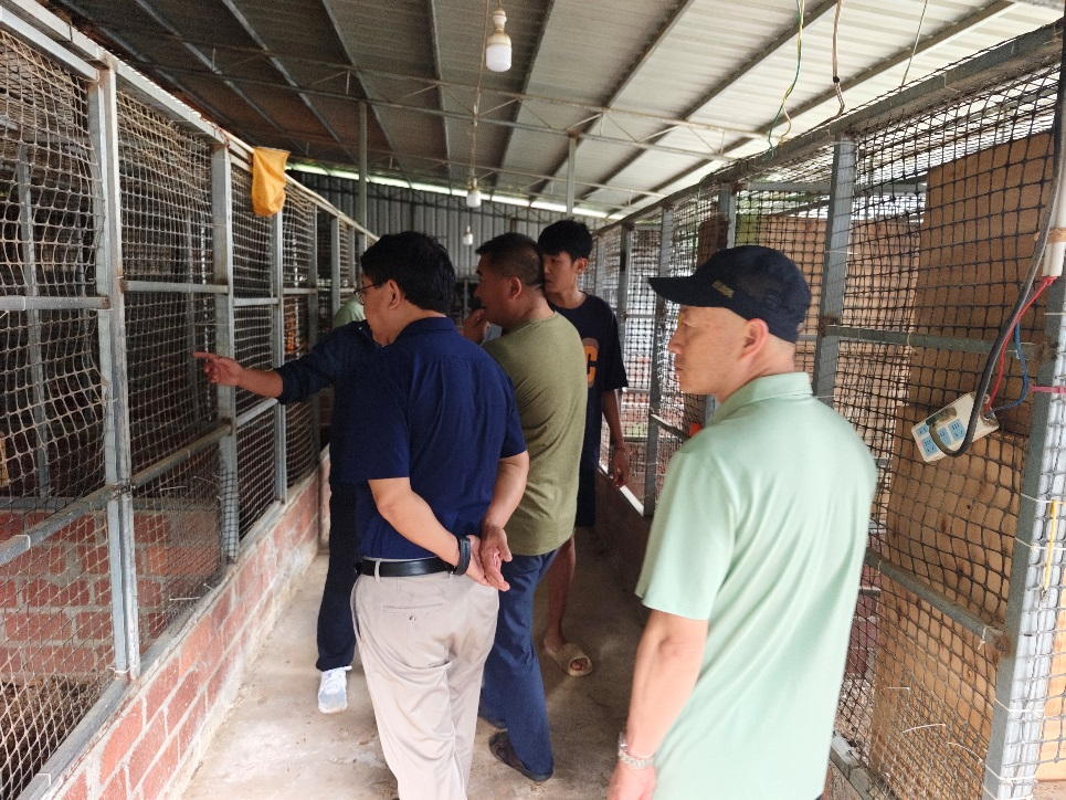 次日,在方凌志副局长和州畜牧站蒋晓云副站长的陪同下,由学院苏华伟副院长带队,科技与对外合作交流处刘晓跃处长,畜牧兽医学院钱林东院长、简宗辉博士,实践教学中心郭其华副主任等相关部门代表赴勐海县对版纳斗鸡和勐海烤鸡品种进行实地调研,为进一步合作开展版纳斗鸡和勐海烤鸡地方标准申报收集第一手资料。