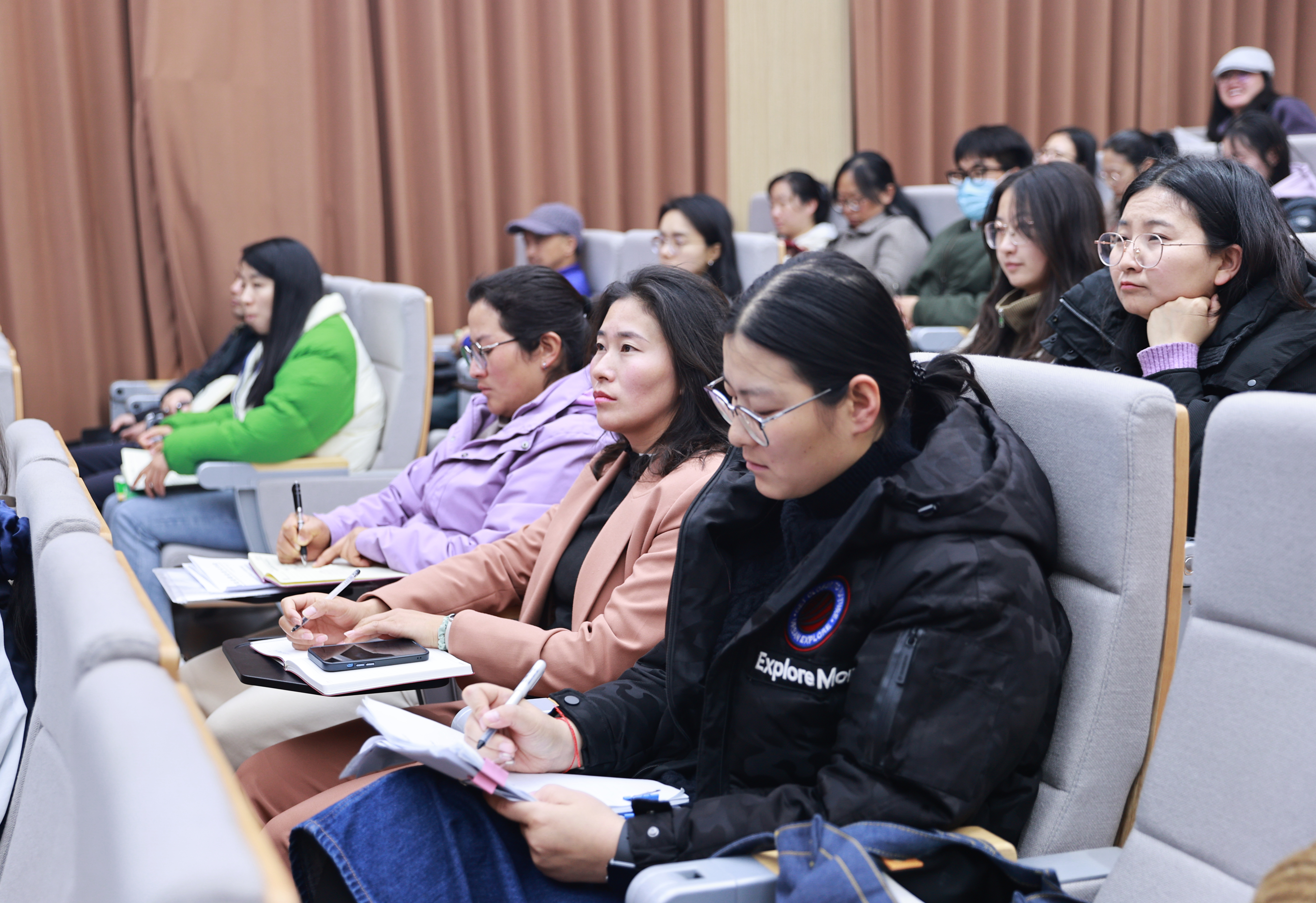 讲座尾声,束教授提炼四点实践启示:教研是教育教学创新的核心驱动力,持续学习与实践是能力提升关键,学校需构建“传帮带”教研生态,教师应深化问题意识与学术思维锤炼。